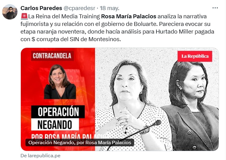 Hoy, Rosa María Palacios se muestra como una justiciera de la prensa, que ataca a todo lo que huela a derecha, a conservadurismo o a cualquier rostro que no encaje con su narrativa “progresista”, pero olvida que fue parte del engranaje que impulsó uno de los gobiernos más cuestionados de la historia del Perú. ¿Y ahora quiere vestirse de caviar demócrata, acusar de corrupción, y señalar con el dedo a Keiko y otros líderes políticos? ¿Dónde quedó la coherencia?