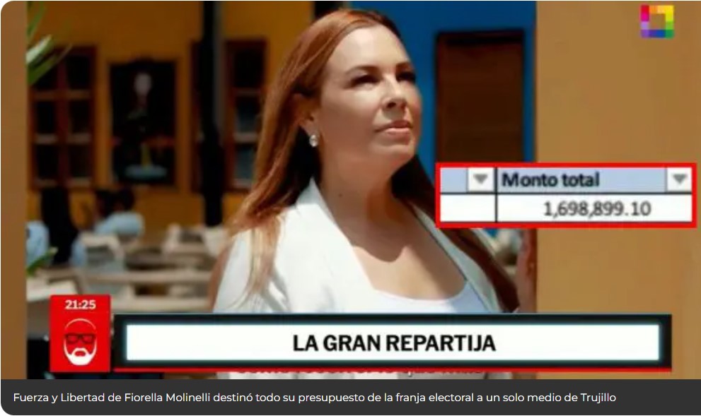 No estamos hablando de unas cuantas monedas. Estamos hablando de una montaña de dinero que sale de tus impuestos, de tu trabajo y del esfuerzo de millones de peruanos. Molinelli ha entregado más de un millón y medio de soles a un solo medio de comunicación. Sí, así como lo lees. Todo el presupuesto de la franja electoral fue a parar a una sola empresa en Trujillo.