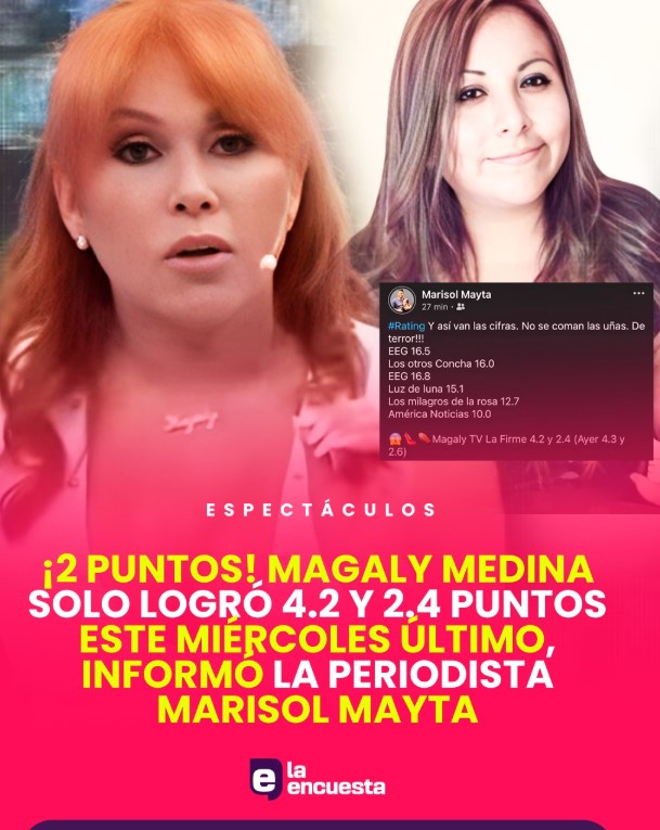 Con una sonrisa que muchos califican de fingida, la propia Magaly confirmó la noticia a través de sus redes sociales. Ahora, su programa empezará más temprano, exactamente a las nueve y media de la noche. Magaly Medina ha tenido que retroceder para no morir televisivamente, aceptando ir justo después del noticiero de Mávila Huertas. Lo que todos se preguntan ahora es si este cambio será suficiente para salvarla o si solo es el comienzo de su despedida definitiva.