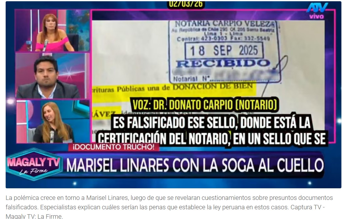 La bomba estalló cuando el programa “Magaly TV La Firme” contactó al notario Donato Carpio, cuyo sello aparecía en el polémico documento. El abogado no se guardó nada y dejó claro que él jamás firmó ni autorizó ese papel.