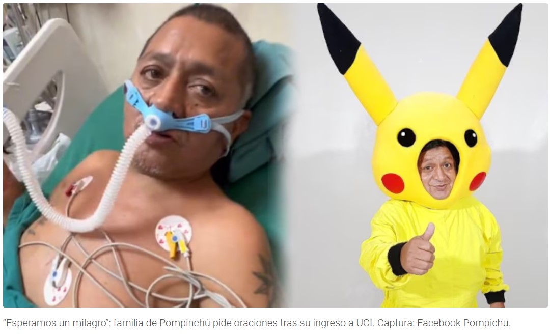 La noticia ha caído como un balde de agua fría para todos. Pompinchú está en una lucha constante por respirar y su familia vive horas de mucha angustia. El querido artista está internado en el Hospital Santa Rosa y su estado es sumamente delicado.