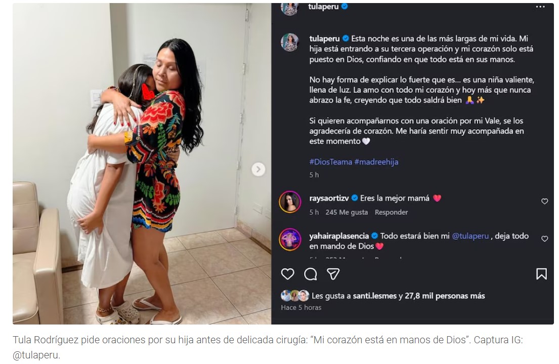 En un acto de desesperación y mucha humildad, Tula ha lanzado un grito de auxilio a todo el pueblo peruano. Ella sabe que en estos casos solo la fe puede salvar a su única hija.